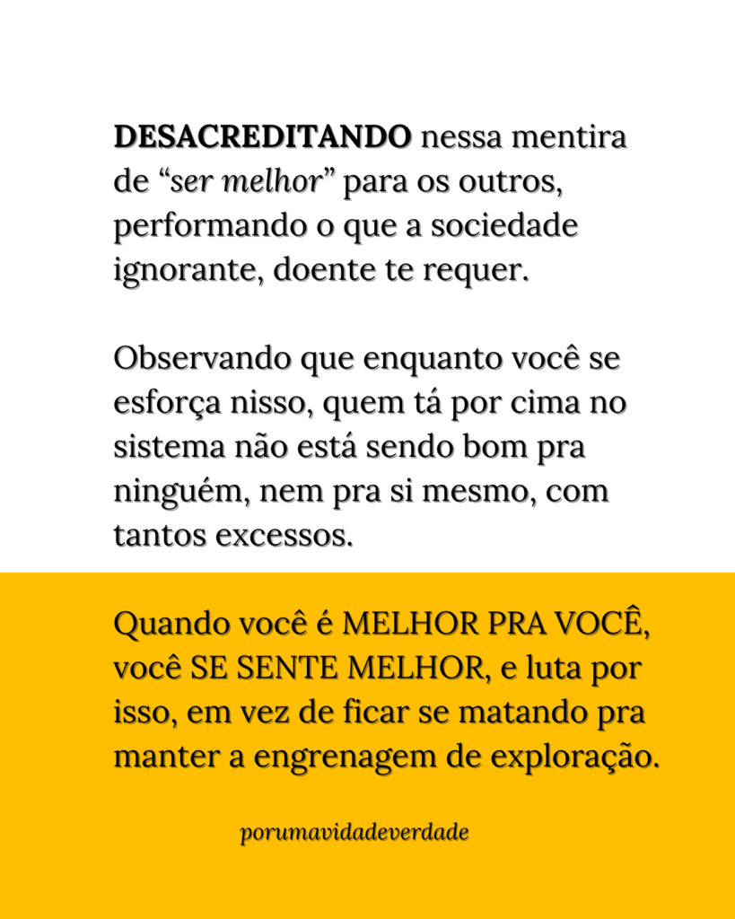 Ela é escrava da sua autoimagem, pois é através dela que conquista a validação externa e o suprimento externo, que nunca é o suficiente para ela.