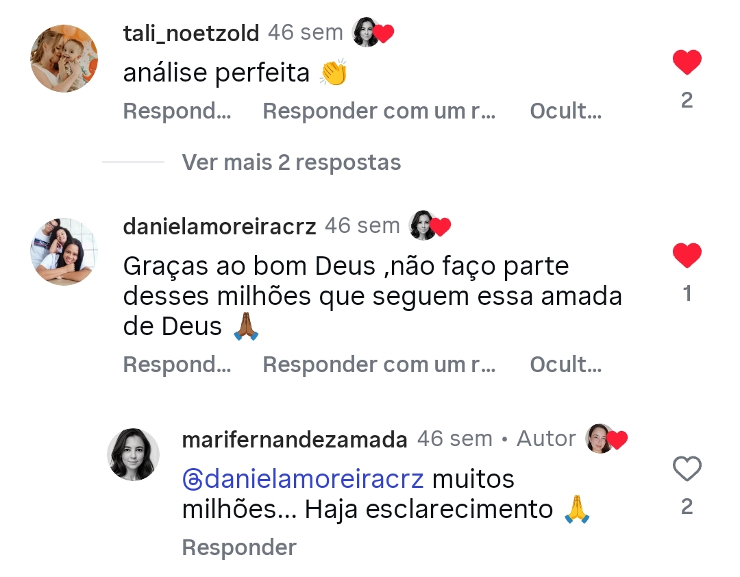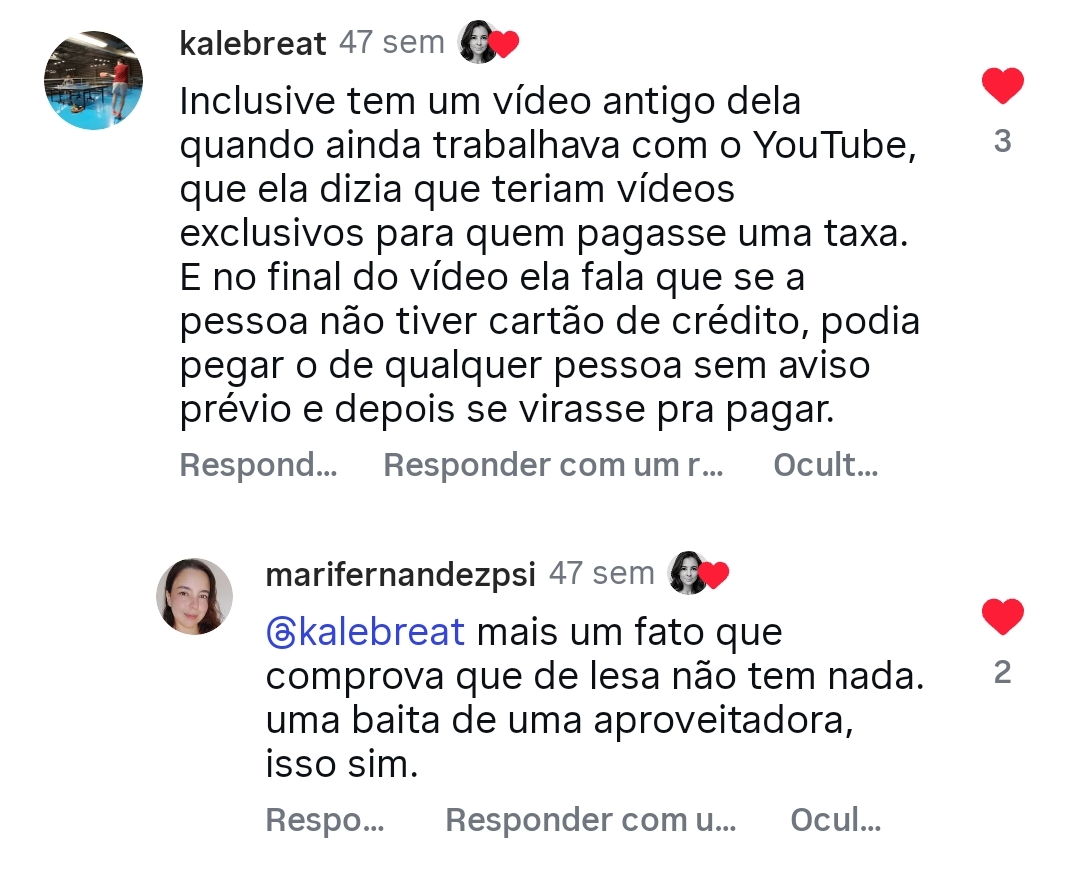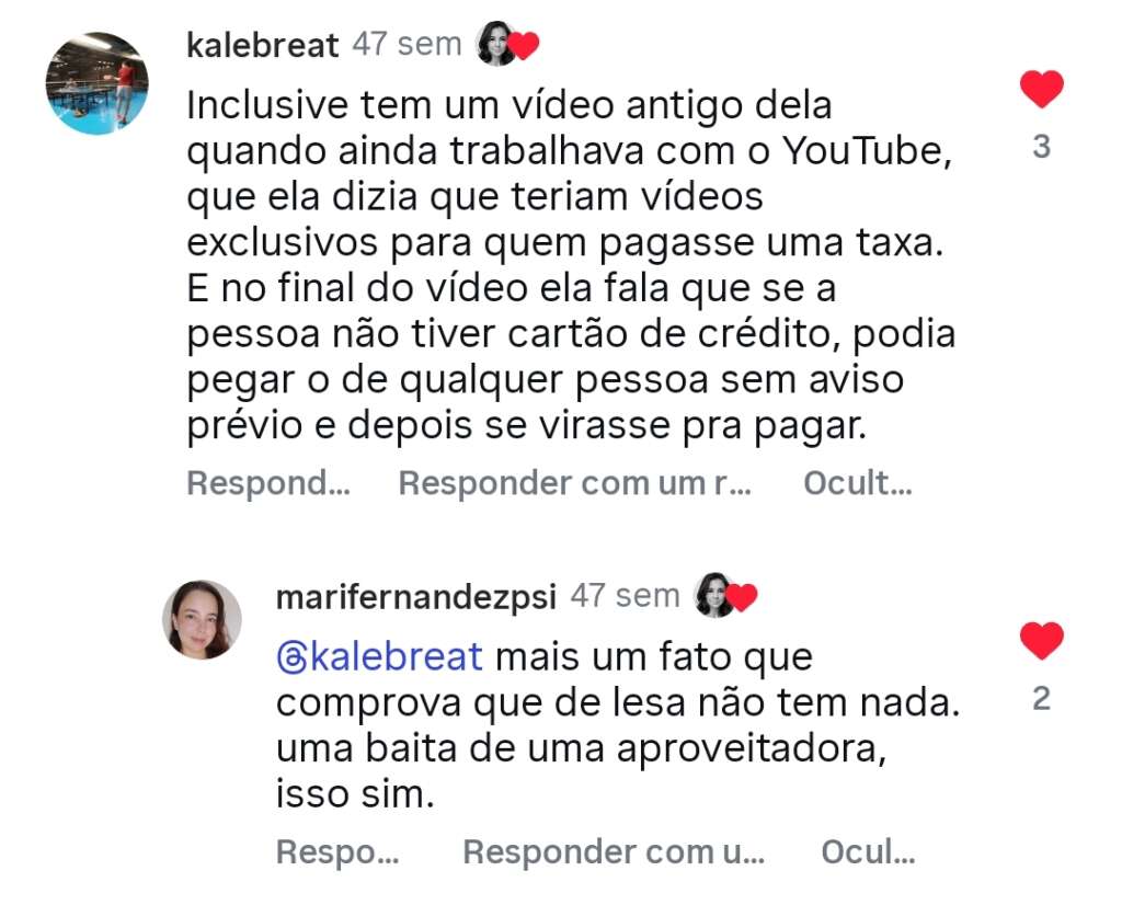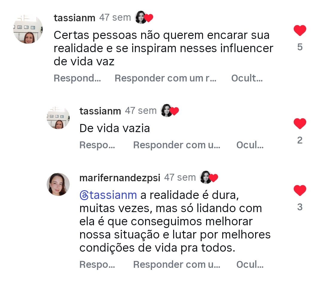 Em outras palavras, a influencer declara o seguinte: