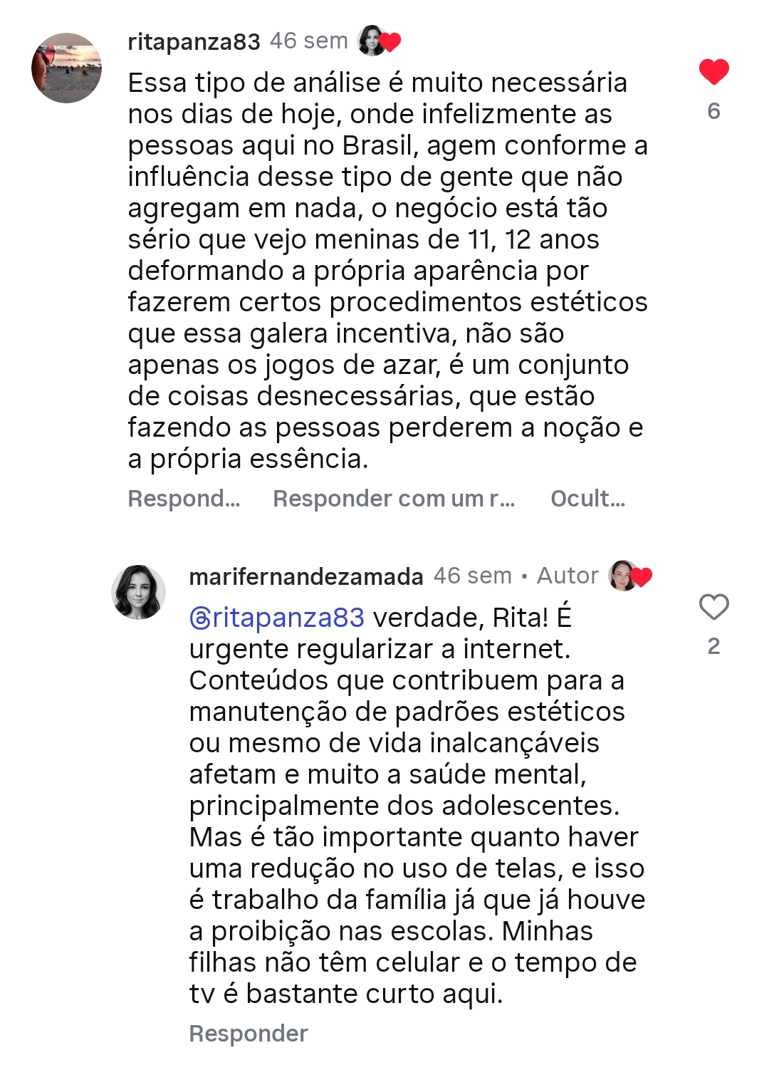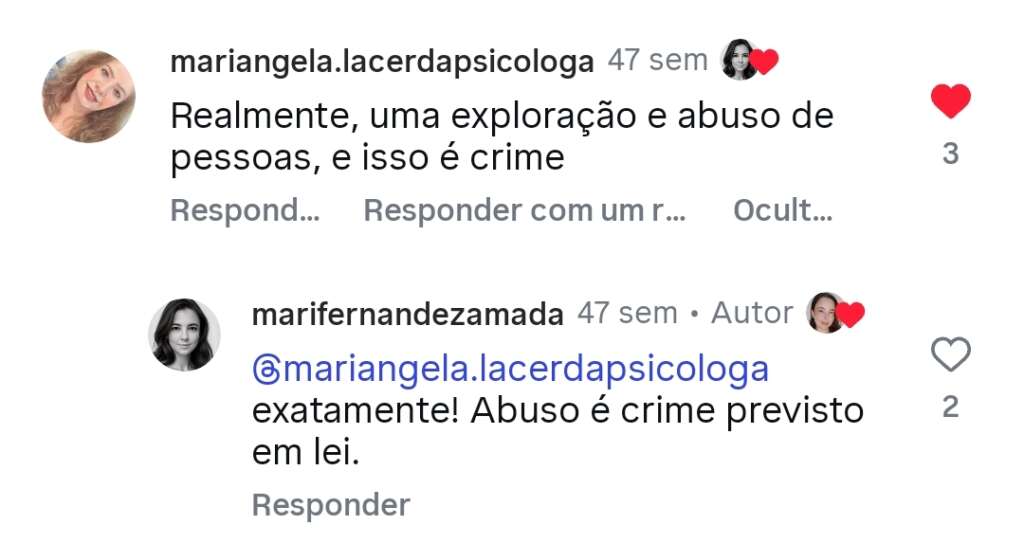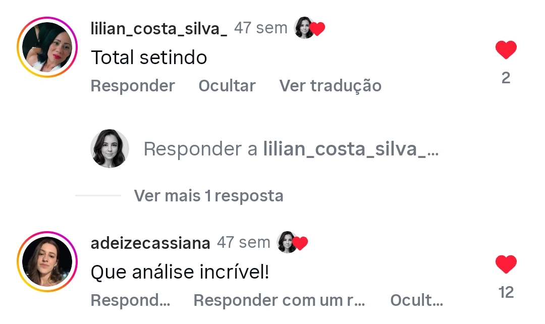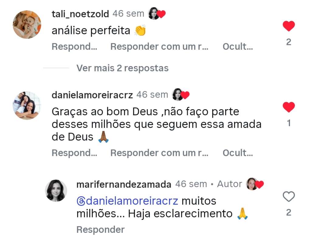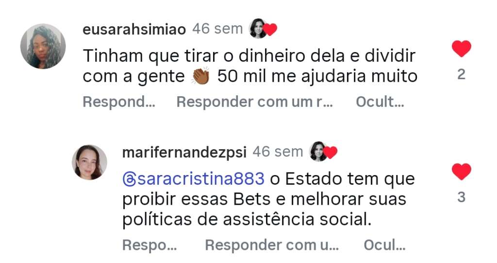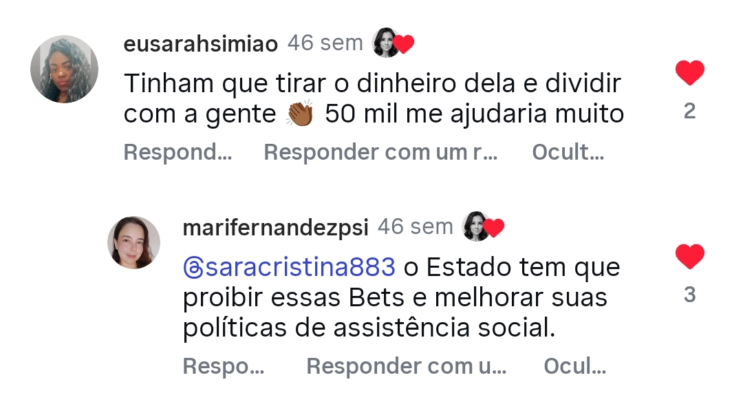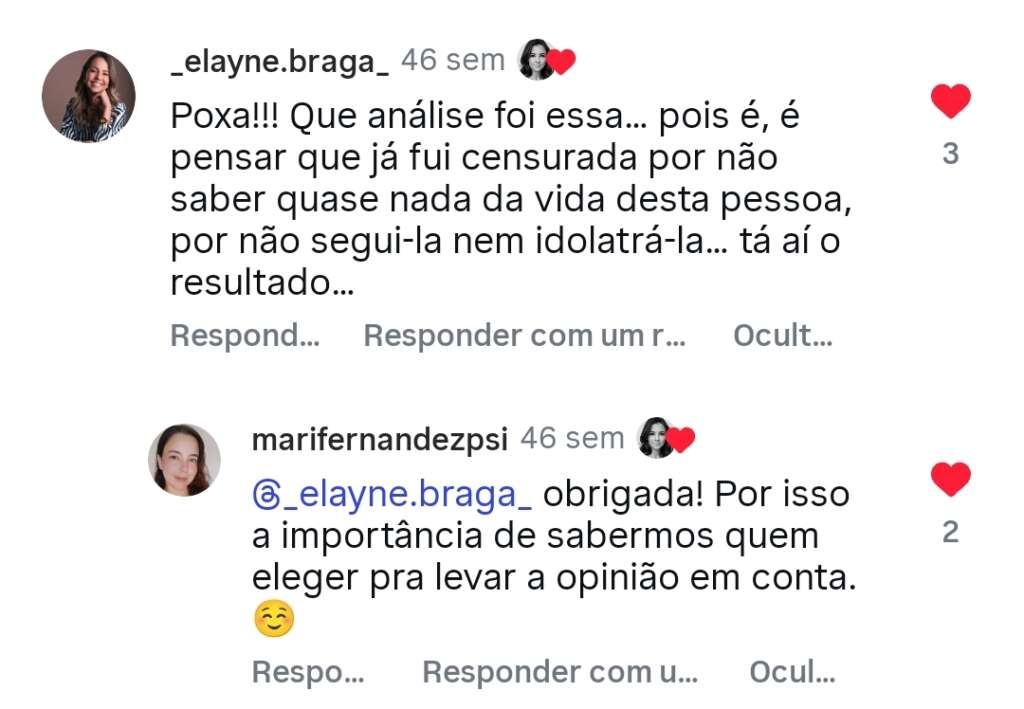 Comentários nas redes sociais: