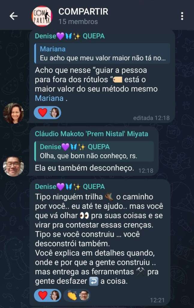 Hoje, me sinto grata e feliz por facilitar a DESCONSTRUÇÃO DE PADRÕES de mais de 2 mil pessoas com meu método A.M.A.D.A., que promove a APROPRIAÇÃO de si mesmo com a retomada da AUTENTICIDADE e do PODER PESSOAL de cada um.