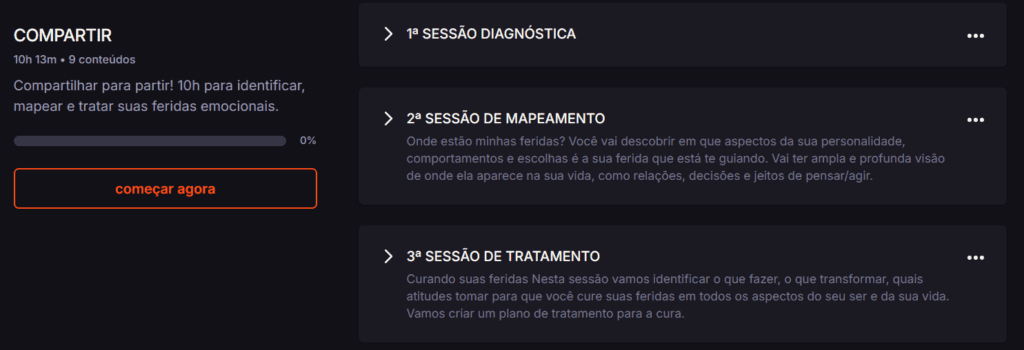 Um PROGRAMA COMPLETO em vídeo e com material em PDF para baixar, para você identificar, mapear e tratar suas feridas emocionais em apenas 10 horas de sessões!